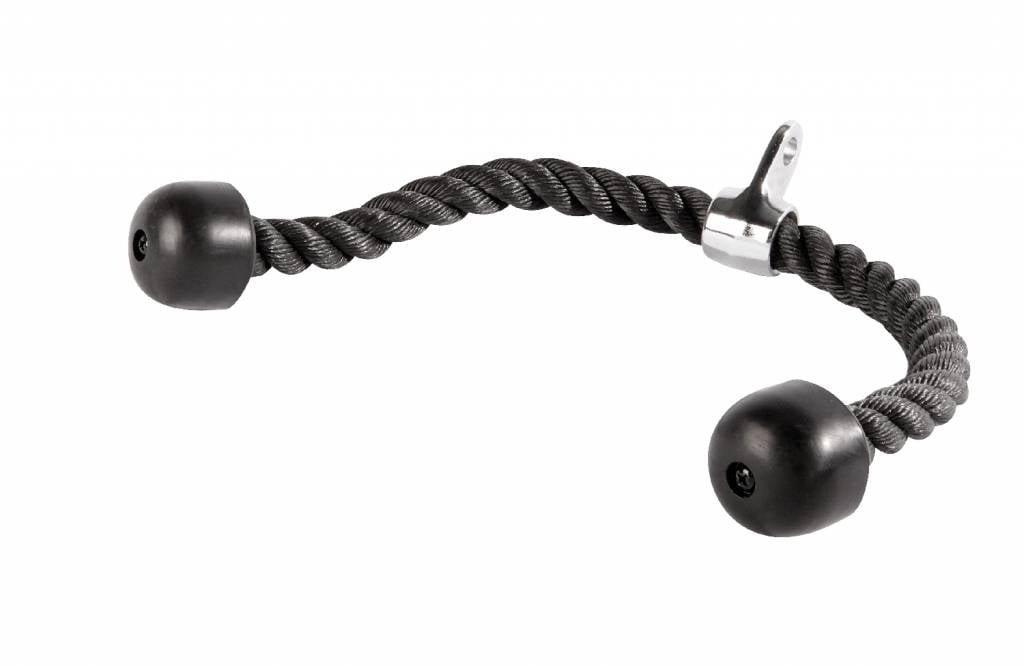 De LMX09 Tricep rope heeft een totale lengte van 70cm en is gemaakt van zwart, sterk nylon. Aan het einde van de Tricep rope zitten rubberen stoppen, deze zorgen ervoor dat u niet met uw handen van de rope afglijdt en deze dienen tevens als extra handvat.