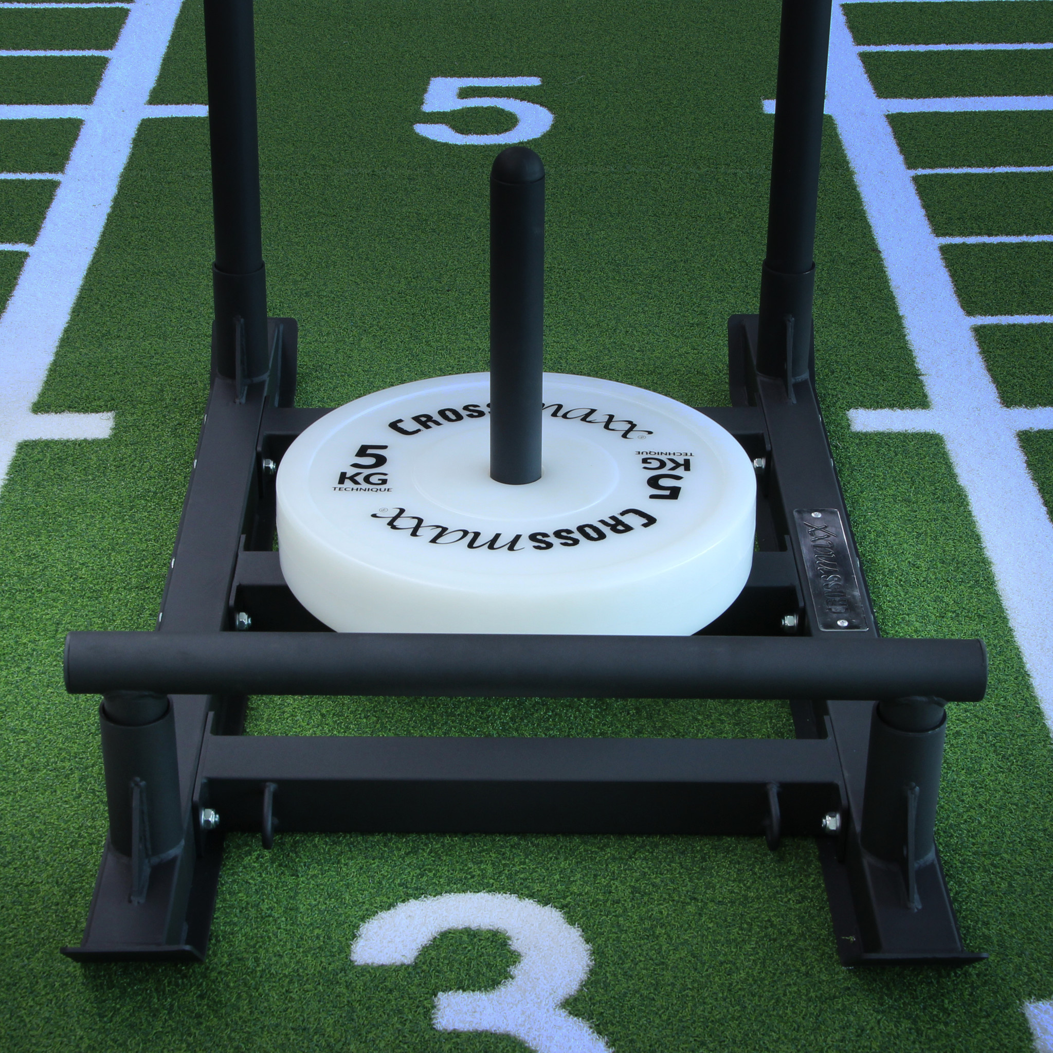 De sleeves kun je gebruiken om de sled te duwen, maar ook om te verzwaren door de sleeves te laden met 50mm plates en schijven.