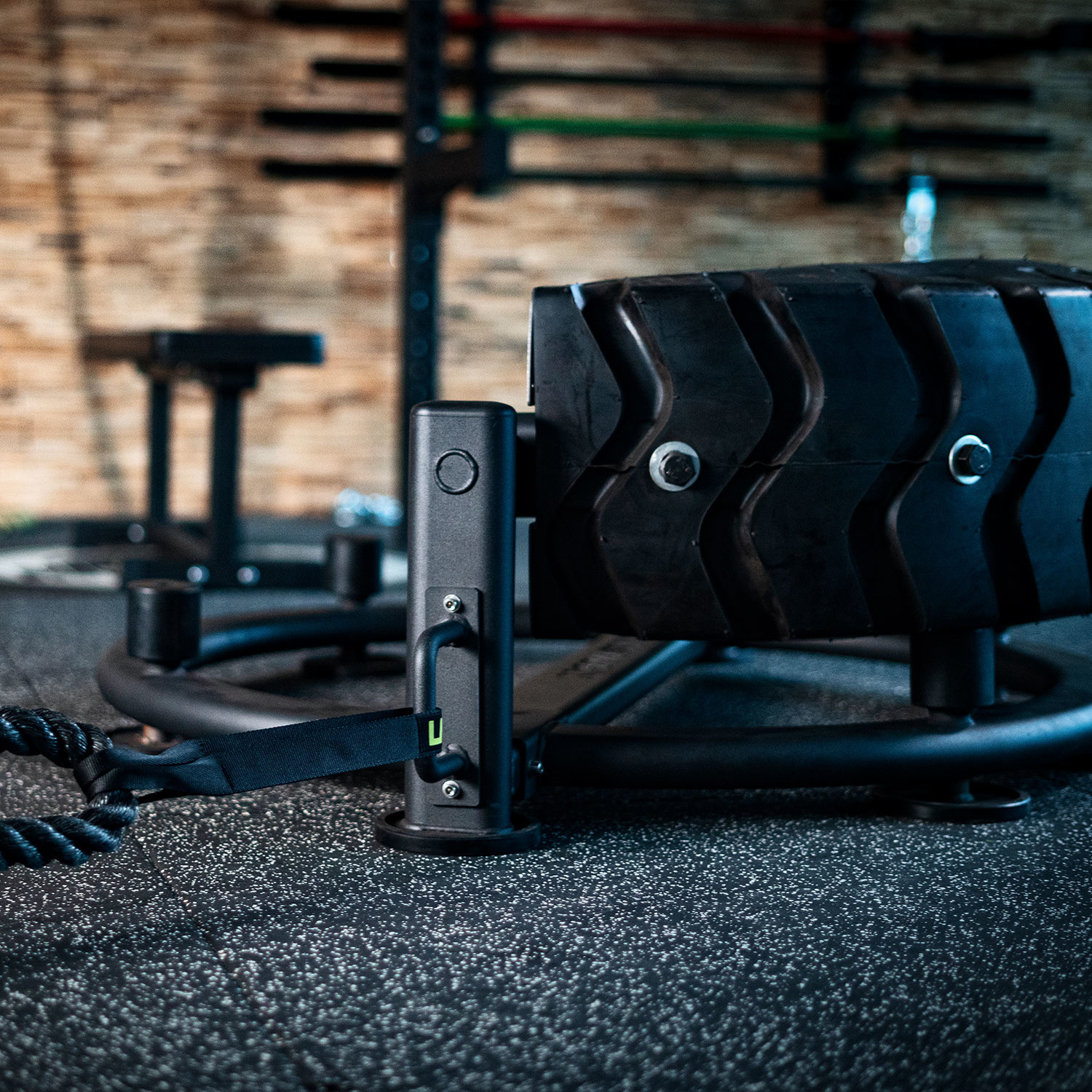 de LMX1059 Crossmaxx® Tire Flip kan naar wens verankerd worden in de vloer voor extra veiligheid.